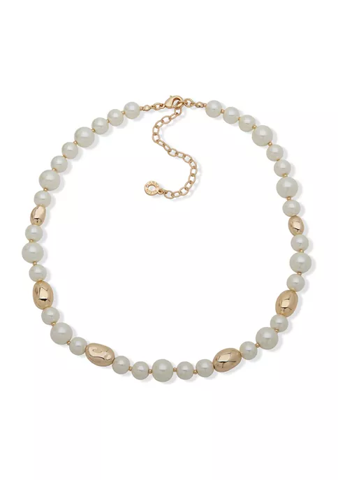 Flanked in elegant pearls, this collar necklace from Anne Klein adds sophistication to your collection.