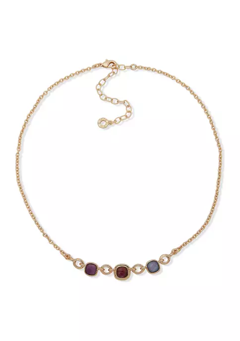Pretty purple stones punctuate this elegant necklace from Anne Klein, complete with a secure lobster closure.