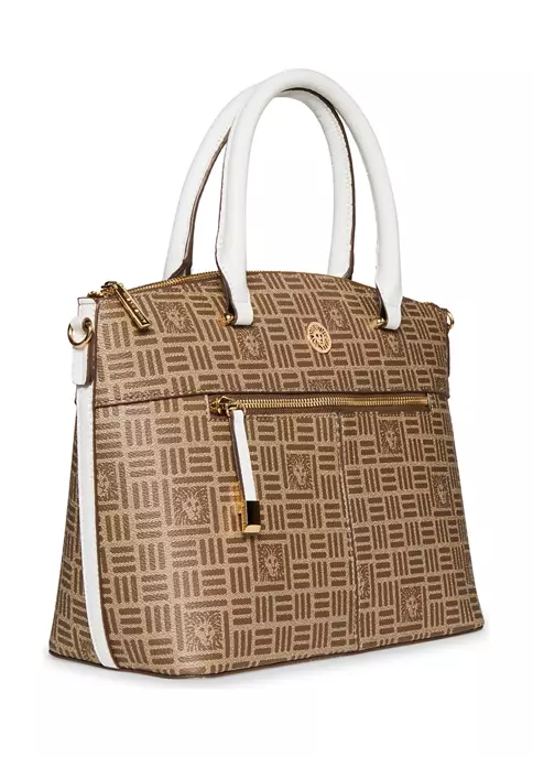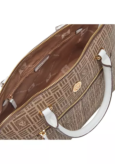 Covered in an intriguing Anne Klein logo print, this domed satchel makes it easy to carry your essentials in style.
