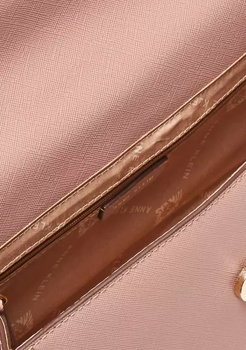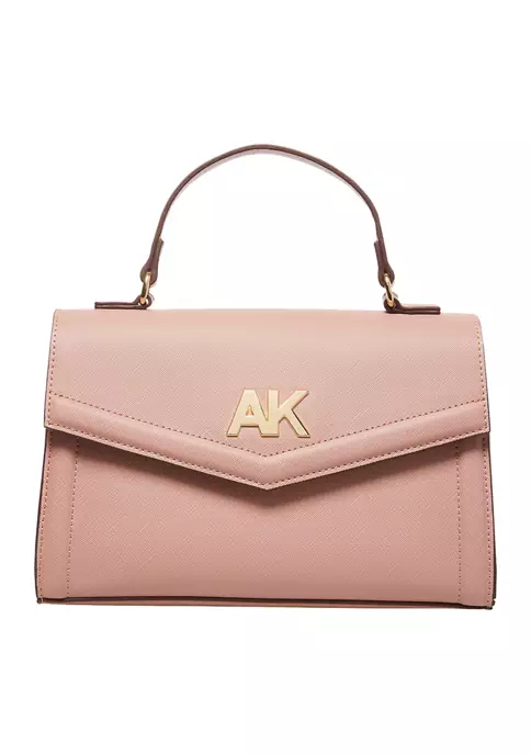 Updated with a gold-tone AK logo embellishment on the lap, this chic satchel features both a top handle and crossbody strap for versatility.