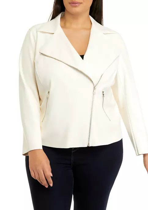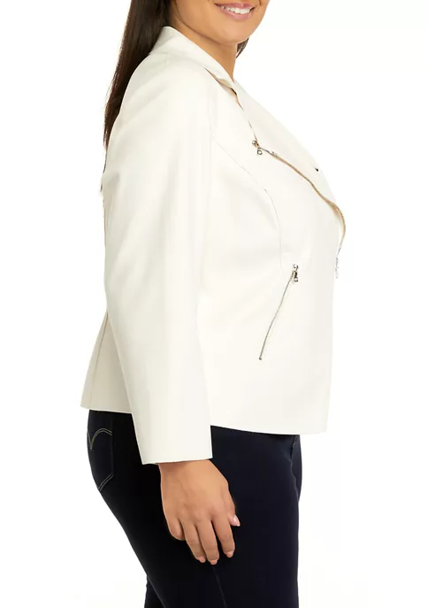 Budget ❤️ Anne Klein Plus Size Vegan Leather Drape Front Peplum Jacket 😍