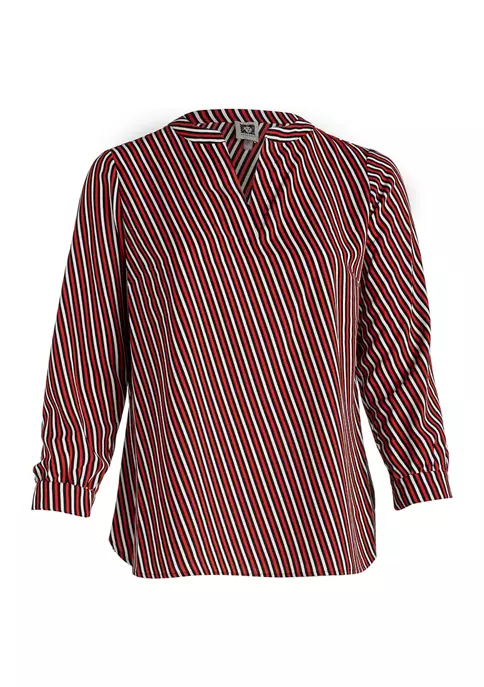 Outlet 🔔 Anne Klein Plus Size 3/4 Sleeve Ruffle Neck Blouse with Keyhole Neckline 🤩