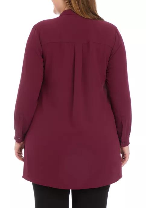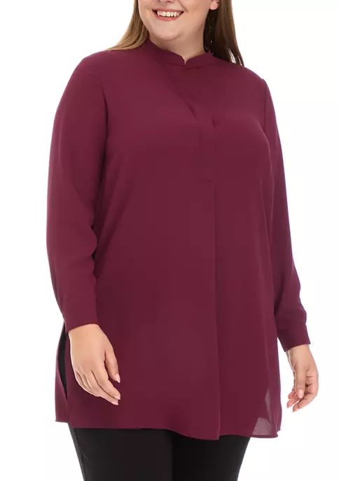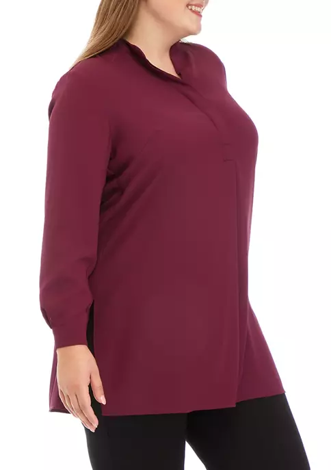 Outlet 🔔 Anne Klein Plus Size 3/4 Sleeve Ruffle Neck Blouse with Keyhole Neckline 🤩