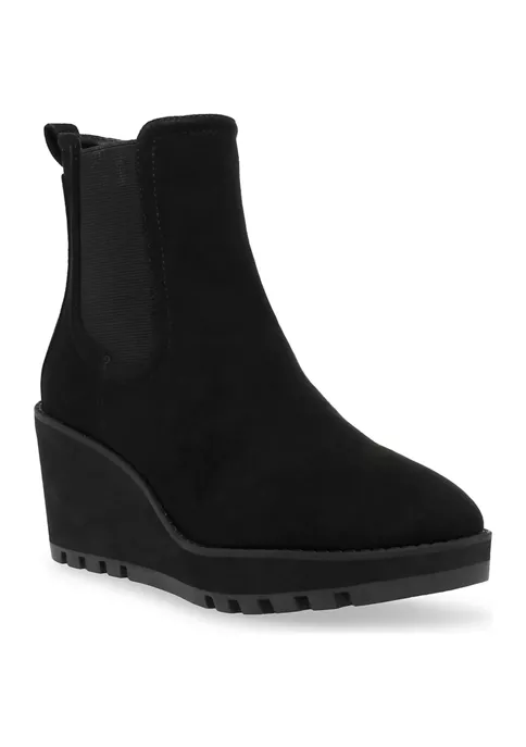 Heightened by a wedge heel, the Portia Bootie from Anne Klein is made with comfort technology to make you feel like you are walking on a cloud.