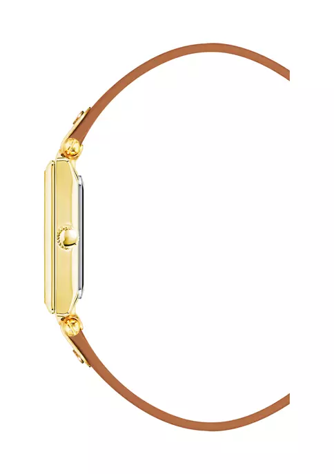 - Leather, gold-tone metal