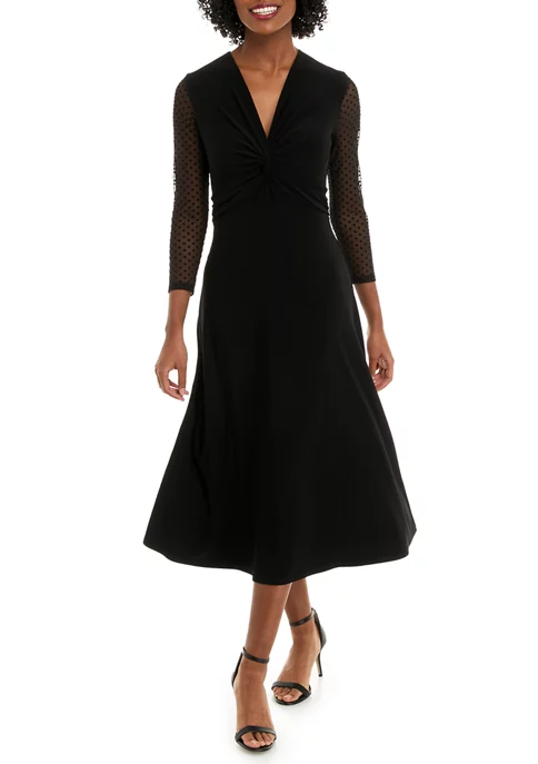 Hot Sale ๐ฅฐ Anne Klein ๐ฉ Women’s Long Sleeve Lurex Bias Stripe Velvet Midi ๐ Dress ๐
