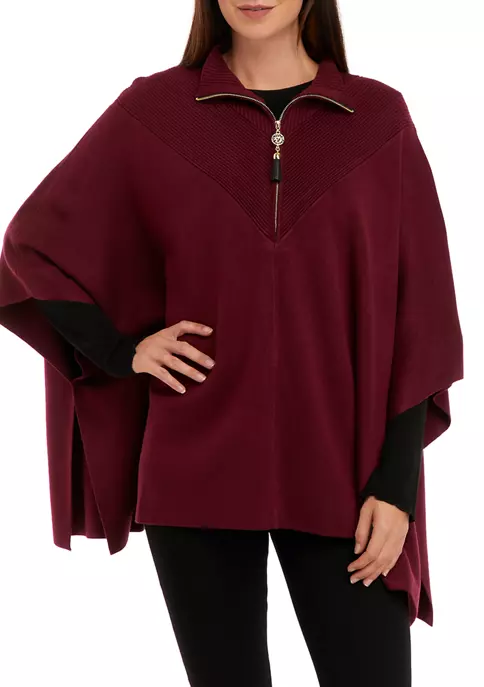 Budget 🎁 Anne Klein 👩 Women's Gifting Mock Neck Ribbed Half Zip Poncho 🔔 -Deals Anne Klein Store Belk 260