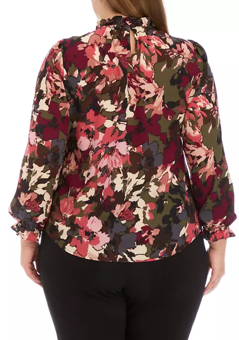 Outlet 🔔 Anne Klein Plus Size 3/4 Sleeve Ruffle Neck Blouse with Keyhole Neckline 🤩