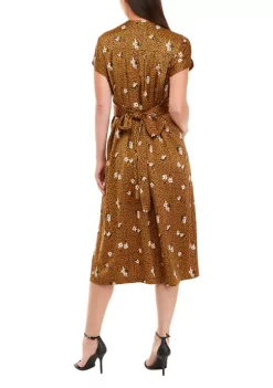 Discount ๐ฅฐ AK Anne Klein ๐ฉ Women’s Split Sleeve Tie Waist Animal Print Satin ๐ Dress ๐