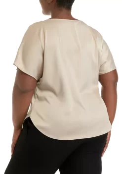 Outlet 🎁 Anne Klein Plus Size Solid Split Neck Tunic Blouse 🌟