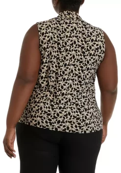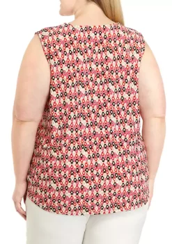 Promo 👏 Anne Klein Plus Size Printed Pleat Front Shell 👕 Shirt 🌟
