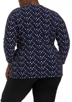 Hot Sale 🤩 Anne Klein Plus Size Printed Dot Triple Pleat Top 💯