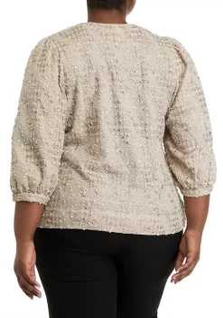 Outlet 🔔 Anne Klein Plus Size 3/4 Sleeve Ruffle Neck Blouse with Keyhole Neckline 🤩